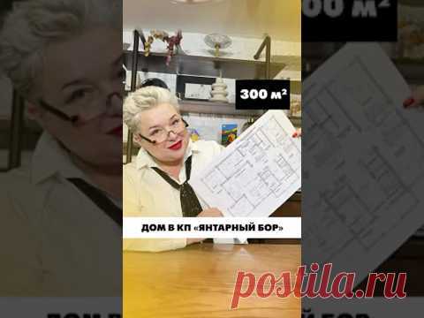 Женщина держит план дома. На табличке указано: 300 м². Дом в КП "Янтарный бор".
