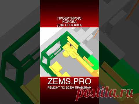 Визуализация проектирования коробов для потолка с рекламой компании ZEMS.PRO.