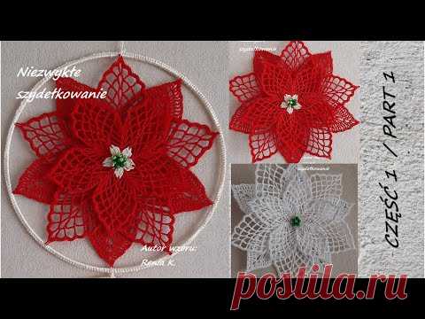 Kwiat 25 cm, cz. 1, gwiazda,poinsecja,szydełko.Wzór autorki Author pattern Renia K. Crochet tutorial