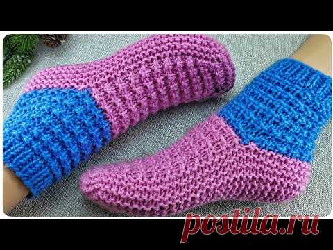 💥ЛЮБОЙ СМОЖЕТ СВЯЗАТЬ!!!💥Вязаные следки на двух спицах👌Подробный мастер класс