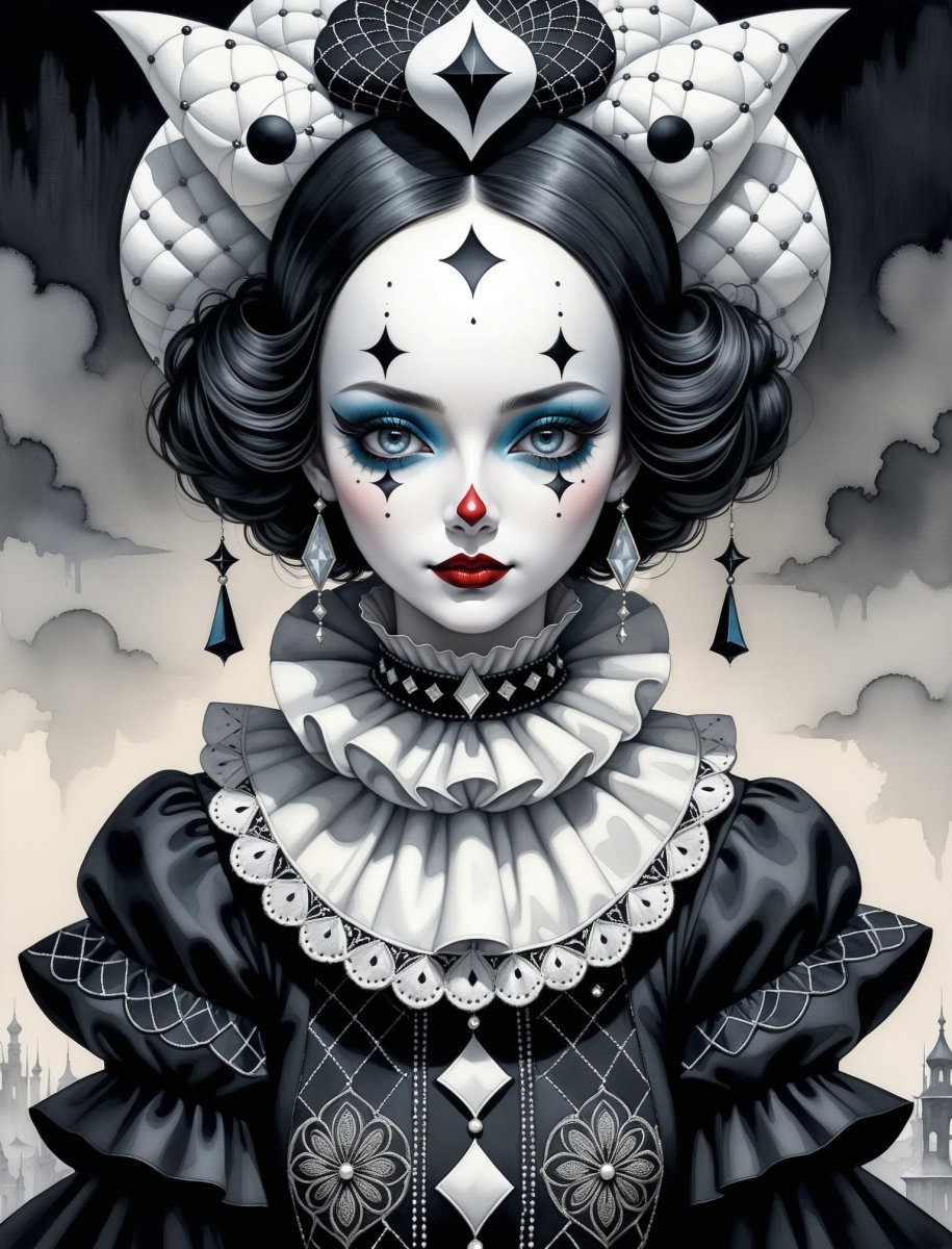 Пьеро в стиле Нео-Нуар: Игра света и тени. Изображение из нейронной сети Stable Diffusion - Stable Diffusion 1.5 / SDXL примеры промтов - Форум ИИ о нейросетях - Yes Ai