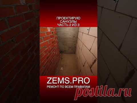 Изображение показывает узкий коридор или проем с кирпичными стенами. На картинке присутствуют надписи на русском языке, рекламирующие проектирование санузлов и ремонт.