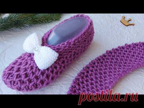 СЛЕДКИ ЗА ПАРУ ЧАСОВ. Домашние тапочки -следки спицами. МК для начинающих.