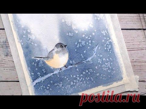 Watercolor winter season painting for beginners. Easy bird painting tutorial.