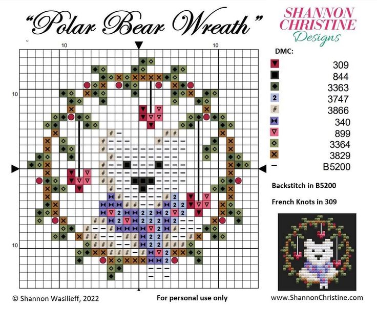 a cross - stitch pattern with the words polar bear wreath on it and an image of a