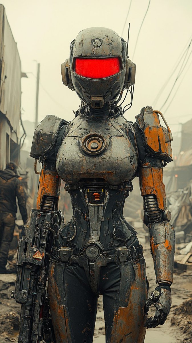 Киберпанк-воин в постапокалипсисе: встречайте робота-боевика. Нейросеть Миджорни - Midjourney примеры промтов - Форум ИИ о нейросетях - Yes Ai