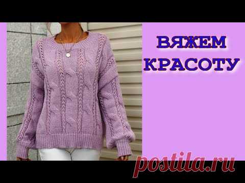 МАСТЕР КЛАСС/Вяжем спицами красивый джемпер (свитер, пуловер) оверсайз узором ПЛОСКАЯ КОСА/БАНТИКИ