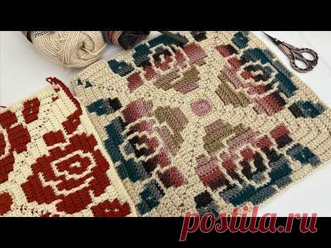 Выложим розы мозаикой в ​​технике вязания крючком🌹#вязание крючком #сделай сам #роза #мозаика #мотив