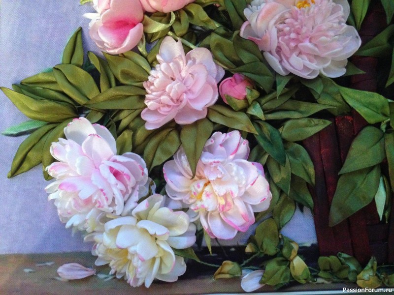 Пионы лентами, очень люблю завораживающую красоту этих цветов | Вышивка лентами Вышитые лентами завораживающие цветы пионов