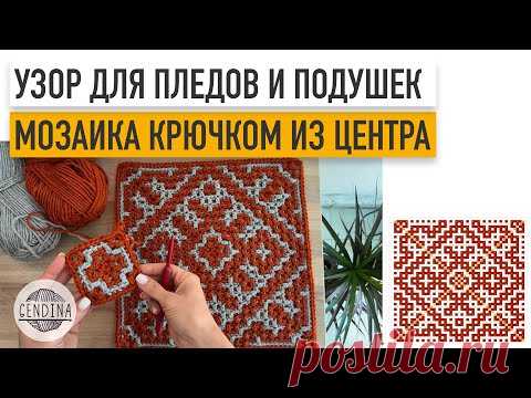 Мотив крючком из центра для пледов и подушек. Мозаичное вязание