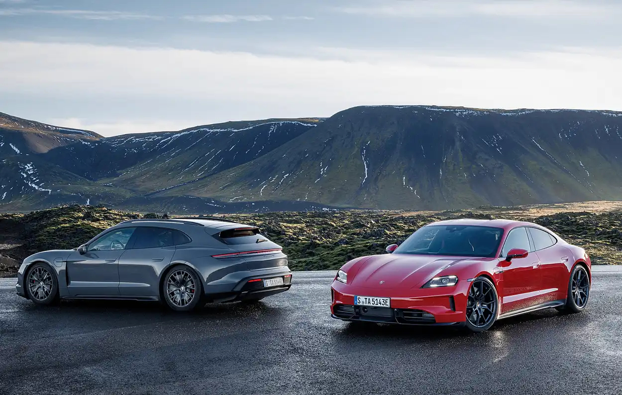 Porsche Taycan 2025 года доступные как спортивный седан и Sport Turismo
