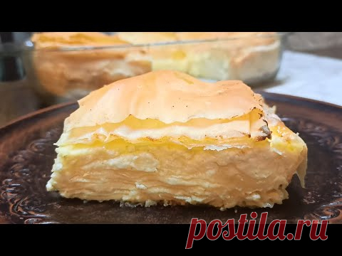 Сладкий слоеный пирог с творогом и тестом фило. Нежная начинка и хрустящая корочка.