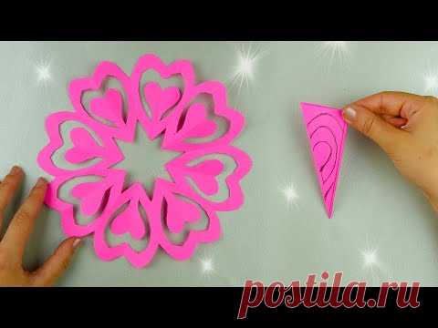 Как вырезать снежинку с сердечками из бумаги [Поделки из бумаги]