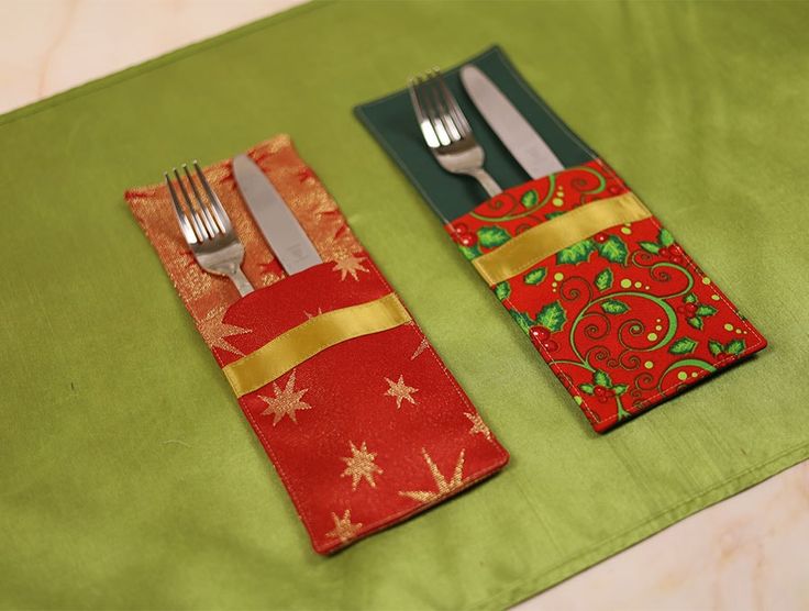 DIY Christmas Cutlery Holder With Free Pattern [Christmas Cutlery Pocket Tutorial] ⋆ Hello Sewing