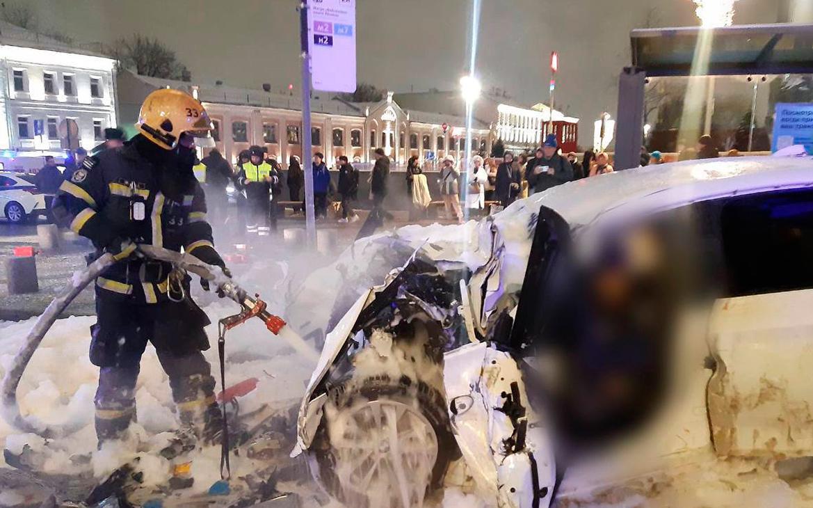 В центре Москвы машина столкнулась с электробусом и загорелась. В центре Москвы на Воздвиженке столкнулись автомобиль и электробус, легковушка загорелась, но сотрудники МЧС потушили огонь, сообщили в официальном канале ведомства.