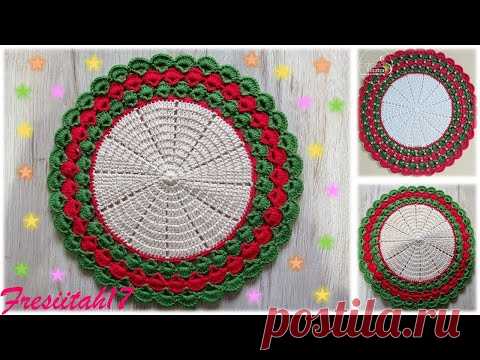 Tapete navideño tejido a crochet (diámetro aprox. 30 cm -17 hileras)