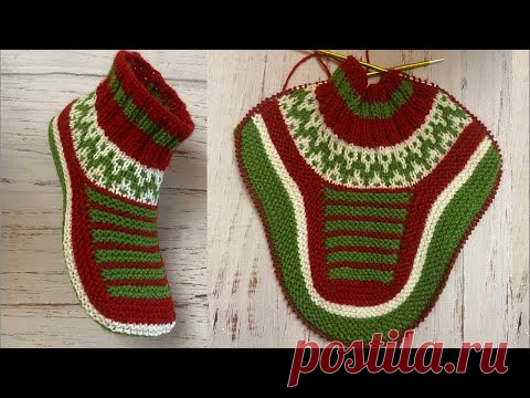 НОВОГОДНИЕ тапочки-следки на двух спицах без швов // patik modelleri