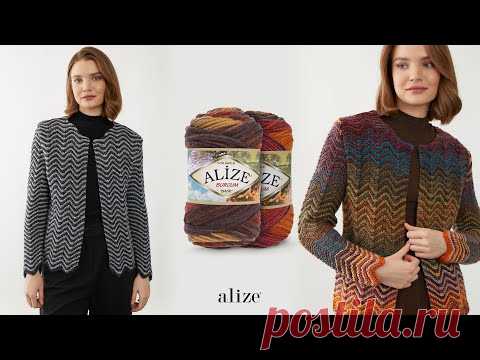 Кардиган с узором зигзаг с пряжей Alize Superlana Midi