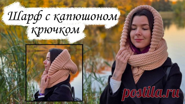 В этом видео вяжем шарф с капюшоном крючком