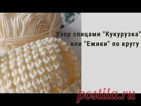Узор спицами "Кукурузка" или "Ежики" по кругу. Вяжется очень легко и просто! #вязание #узорыспицами