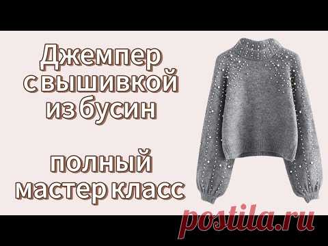 Полный мастер-класс: Джемпер регланом снизу с вышивкой из бусин