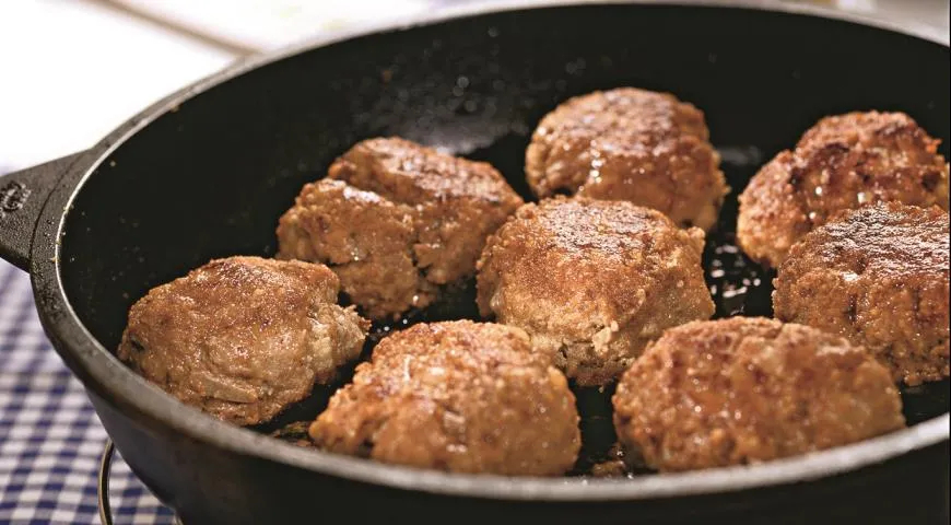 - РЕЦЕПТ ПРИГОТОВЛЕНИЯ Негаснущий экран Нажмите, чтобы экран не гас, пока вы готовите. Экран вернется в привычный режим, когда вы покинете страницу или отключите функцию Шаг 1 Приготовить фарш для котлет. С хлеба срезать корку. Половину батона разломать на несколько частей и замочить в молоке. Вторую половину отложить для панировки котлет.Шаг 2 Когда хлеб размокнет, несильно отжать. Мясо вымыть и провернуть через мясорубку вместе с замоченным хлебом. Лук и чеснок очистить, измельчить. Зелень вымыть, обсушить и мелко нарезать. Бекон порезать кусочками.Шаг 3 Обжарить бекон на разогретой сковороде со сливочным маслом до образования шкварок, 10 мин. Добавить лук, чеснок и зелень и обжаривать 2 мин. Смешать с говяжьим фаршем.Шаг 4 Добавить в фарш из говядины яйца, соль и молотый перец по вкусу. Еще раз тщательно перемешать. Прикрыть фарш полотенцем и оставить на 15 минут при комнатной температуре.Шаг 5 Сформовать котлеты. Их размер и форма могут быть любыми. Каждую вылепленную котлету взять в руки и месить несколько минут, сильно ударяя по фаршу ладонями.Шаг 6 Оставшийся хлеб размолоть в блендере или натереть на мелкой терке. Получится так называемая белая панировка. При обжаривании она не дает котлетам развалиться и вместе с тем не образует жесткой корочки. Обвалять каждую котлету в белой панировке. В сковороде разогреть растительное масло. Еще раз обвалять котлеты из говядины в панировке и обжаривать по 4 мин. с каждой стороны. Уменьшить огонь до минимума. Накрыть сковороду крышкой и готовить 10 мин.