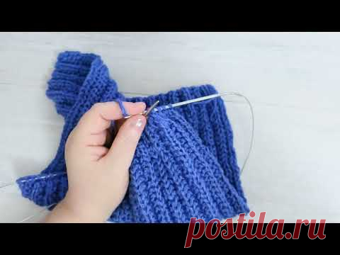 ШАПКА С ОТВОРОТОМ. Вязание спицами.