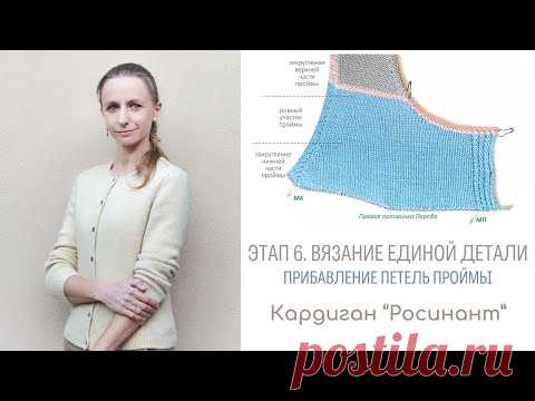 Росинант. Видео 6.2. Вязание единой детали. Прибавление петель проймы