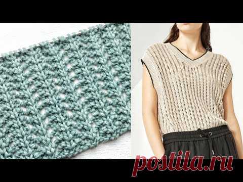 Простой ажурный узор джемпера от Кучинелли / Выглядит как ажурная польская резинка