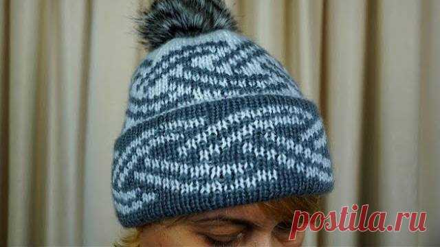 Красивая теплая шапка двухсторонний жаккард. Шапка связана двухсторонним жаккардом. Из пряжи Alize angora gold в 100 гр. 550 м. белый цвет №55 серый №87. Спицы №2,5 и №3,5. Размер 54-56. Шапочка без протяжек тянется хорошо.