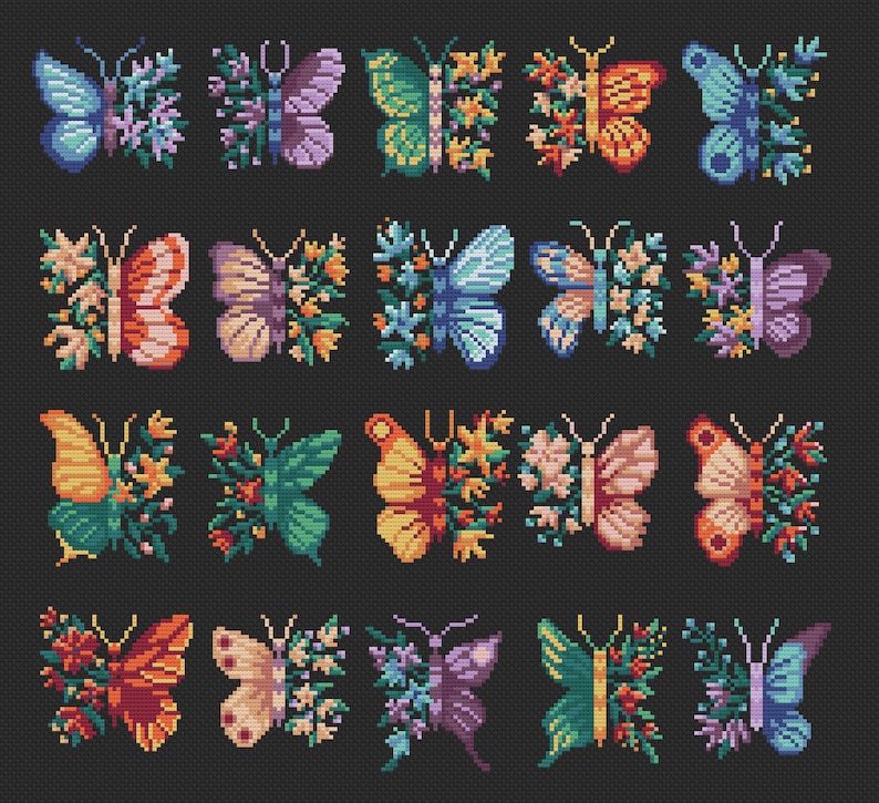 Juego de mariposas de flores de punto de cruz pequeño, paquete de punto de cruz pequeño, patrón de punto X de Animal pequeño fácil, mariposa de punto de cruz Simple - Etsy España