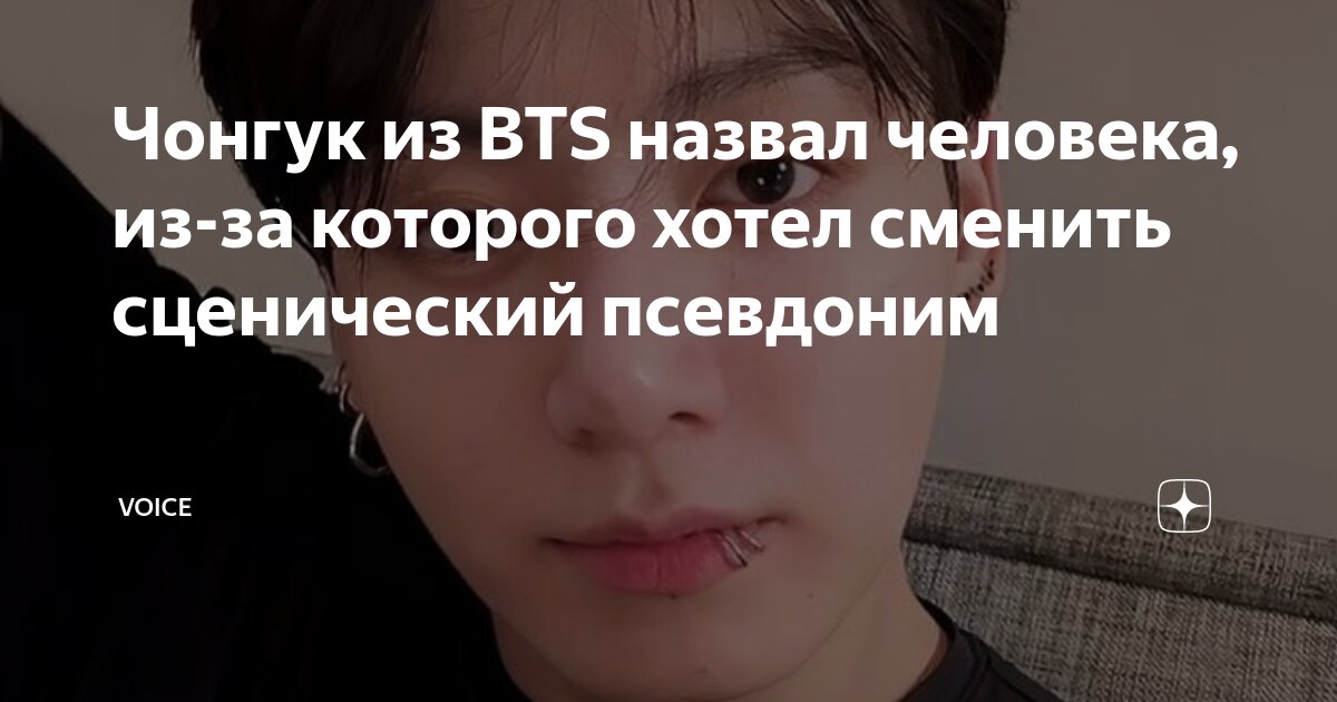 Чонгук из BTS назвал человека, из-за которого хотел сменить сценический псевдоним Статья автора «VOICE» в Дзене ✍: Чон Чонгук из BTS раскрыл значение имени «Ian» в своем новом документальном сериале. Оно связано с его любимым танцором и хореографом.
