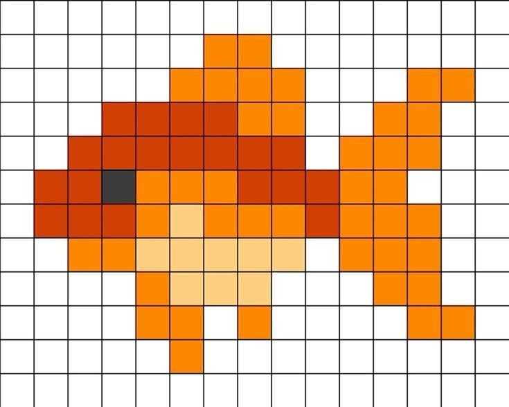 an orange and white pixellated pattern with squares in the shape of a dog's head