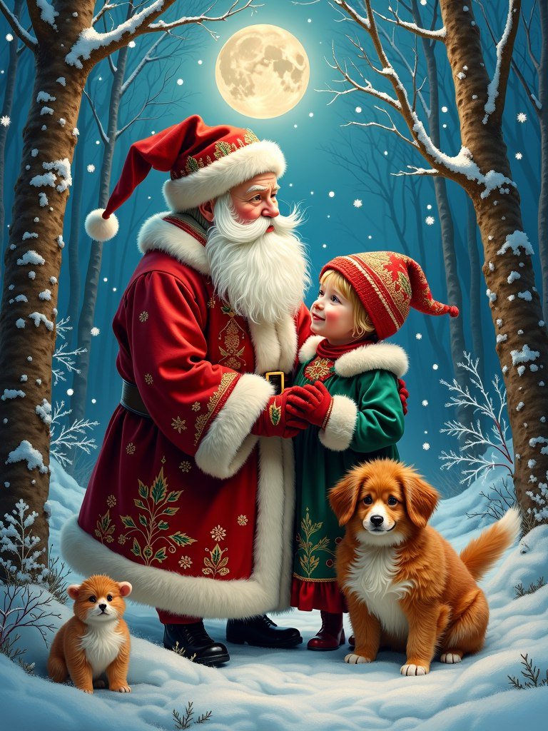 Замороженный Волшебный Лес С Дедом Морозом и Снегурочкой. Картинка из нейросети Flux 1 - Flux.1 примеры промтов - Форум ИИ о нейросетях - Yes Ai