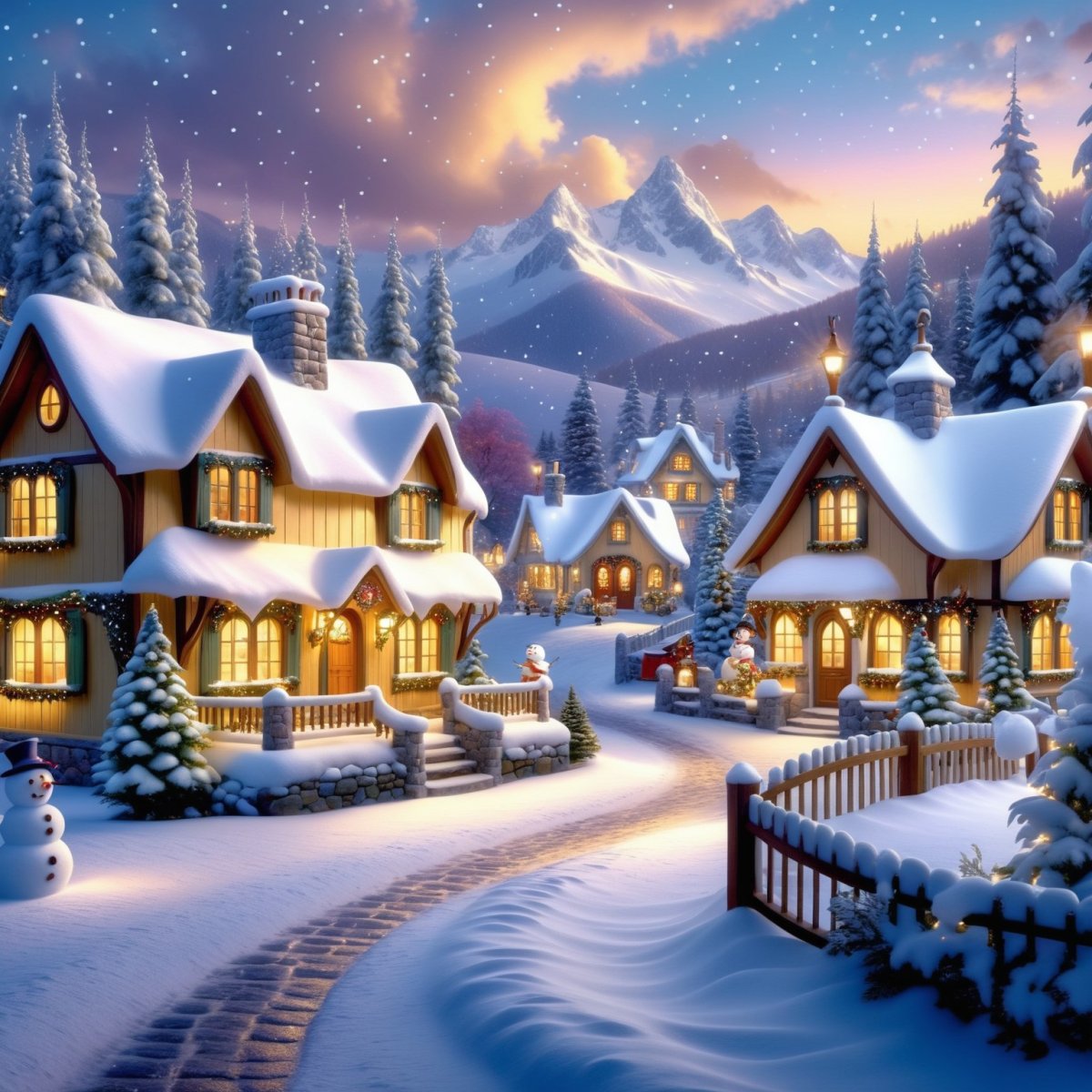 Зимняя Волшебная Сцена из Снежного Деревушки. Картинка из нейронной сети Stable Diffusion - Stable Diffusion 1.5 / SDXL примеры промтов - Форум ИИ о нейросетях - Yes Ai