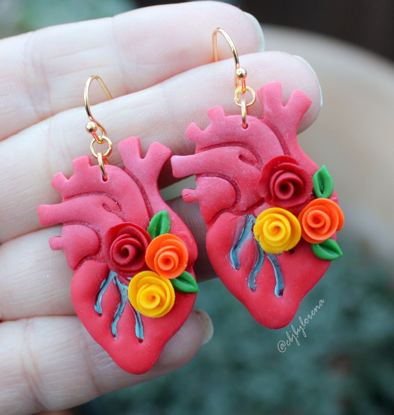 El corazon dangle earrings. Human heart dangle earrings. Latin inspired artisan earrings. Love and friendship gift. - Etsy España