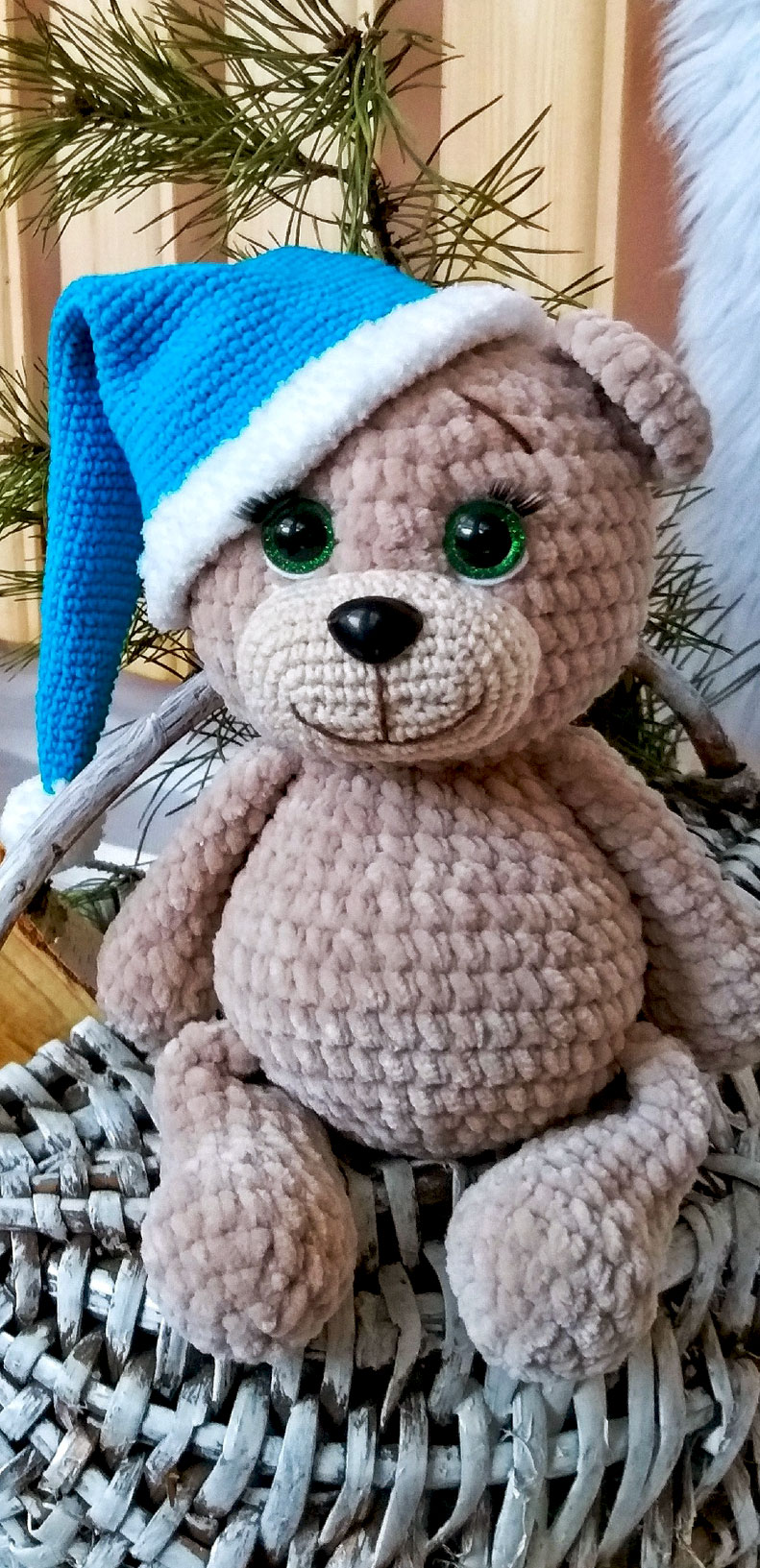 PDF Мишка в колпачке крючком. FREE crochet pattern; Аmigurumi animal patterns. Амигуруми схемы и описания на русском. Вязаные игрушки и поделки своими руками #amimore - медведь из плюшевой пряжи, плюшевый медвежонок, мишка в шапочке.