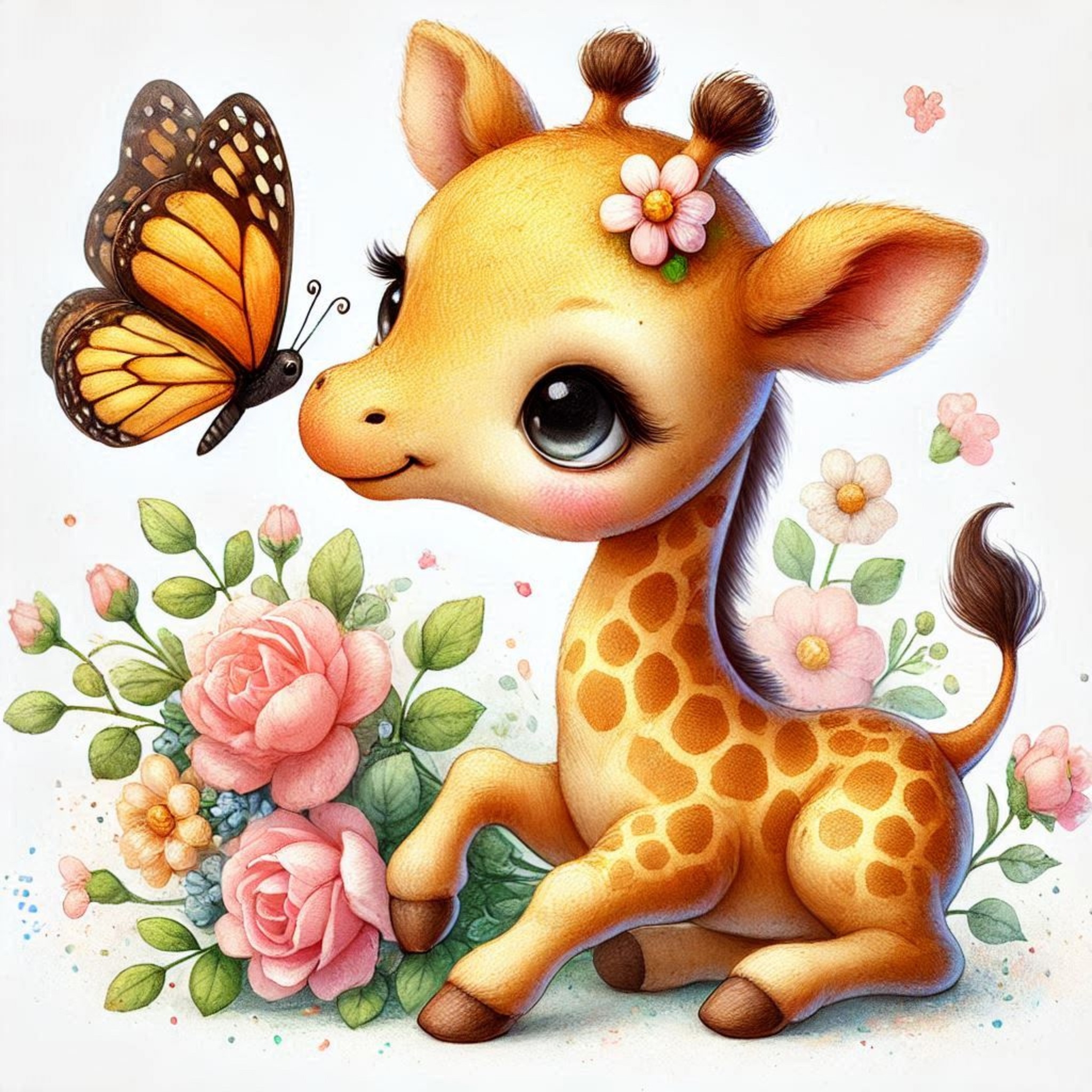 Жирафчик и бабочки(нейросеть)