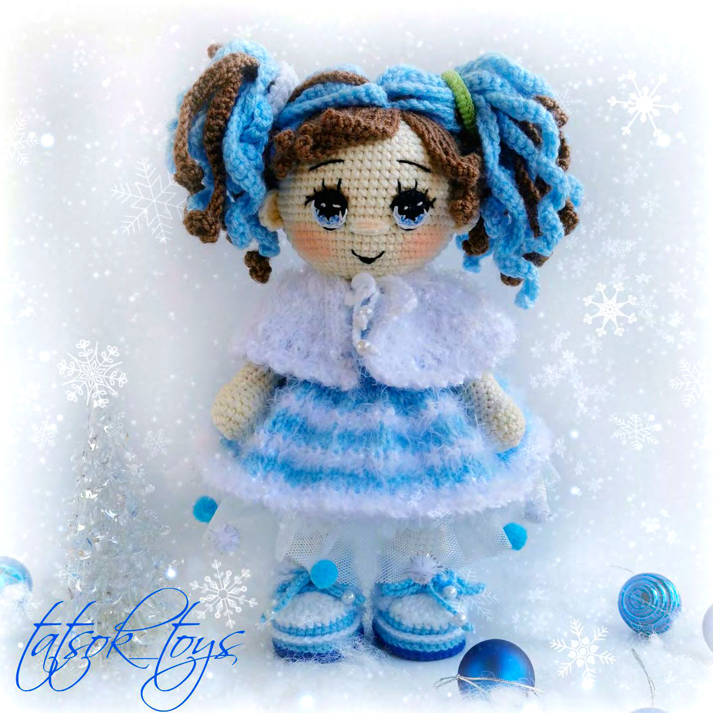 PDF Малышка Винте крючком. FREE crochet pattern; Аmigurumi toy patterns. Амигуруми схемы и описания на русском. Вязаные игрушки и поделки своими руками #amimore - кукла в платье из обычной пряжи, куколка девочки в зимнем наряде.