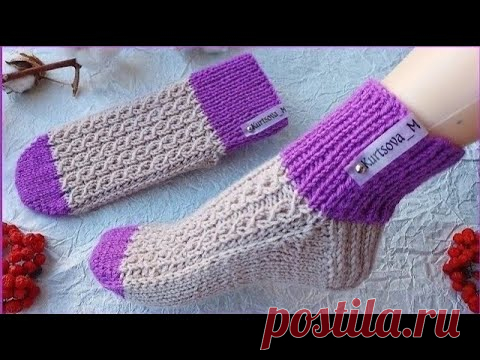 Носки- следки на двух спицах БЕЗ ШВА. Носки с «Квадратной пяткой» подробный МК.