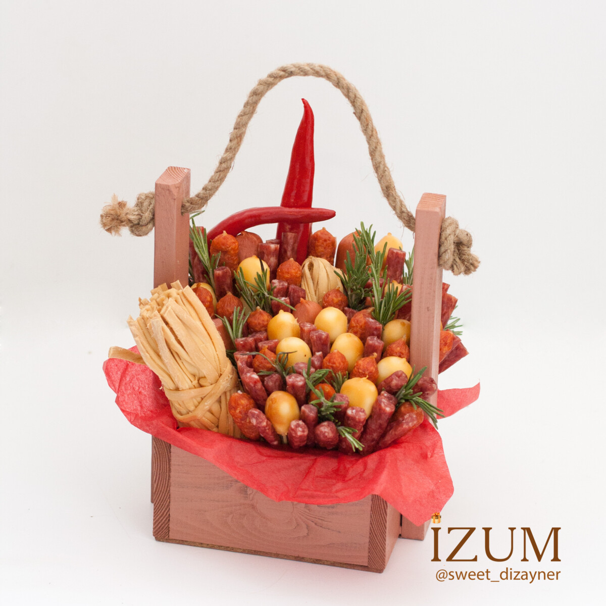 Мужской бокс "23 февраля" - Съедобные букеты Пермь Размер: высота 30см., ящик 13х13см. Напиток не входит в стоимость композиции и предоставляется заказчиком для оформления, оставляю под него место и вы можете поставить самостоятельно. Мужские боксы смотрятся очень стильно и хотя этот бокс небольшой, но 23 февраля показало, что он имеет право на жизнь. В нем всего в меру для вашего мужчины и самое главное очень вкусная цена на этот мясной букет для мужчины.