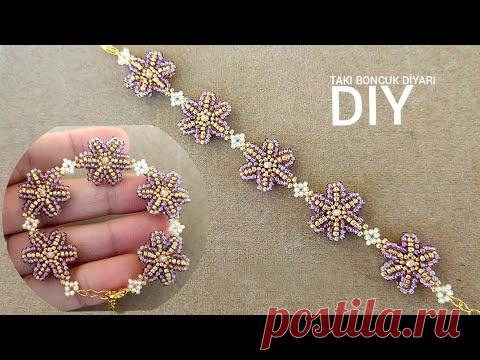 Kum boncuktan Çiçekli Bileklik Yapımı / Flower bracelet with seed beads /How to make beaded bracelet