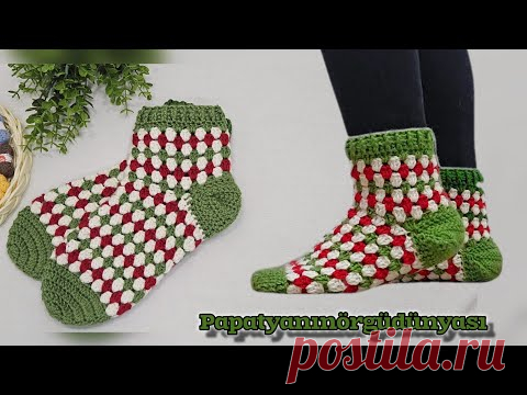 очень стильно и очень просто / как связать яркую модель носка крючком