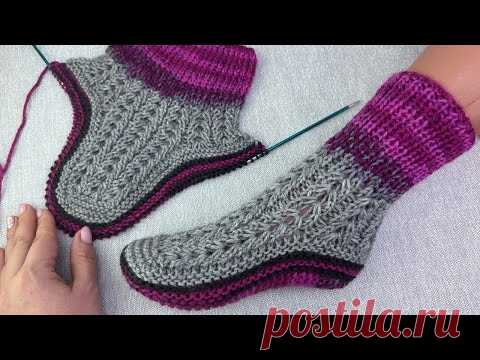Домашние следки-носочки спицами. Простые следки спицами без швов на подошве.