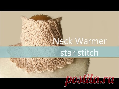 スタークロッシェ * ネックウォーマー(スヌード)の編み方 * / How To Crochet * Neck Warmer (Cowl) Star Stitch *