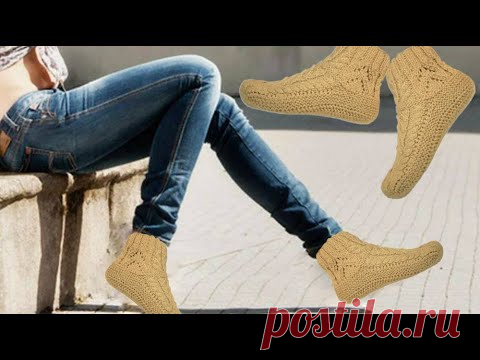 Носочки тапочки двумя спицами. Очень просто. #2025