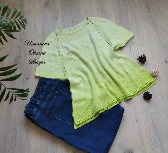​"Я слышал вальс листвы и ветра..." - летний джемперок с короткими рукавами.