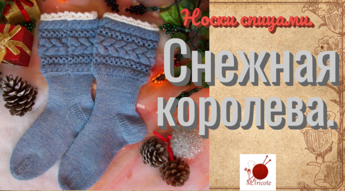 Носки "СНЕЖНАЯ КОРОЛЕВА" -спицами.