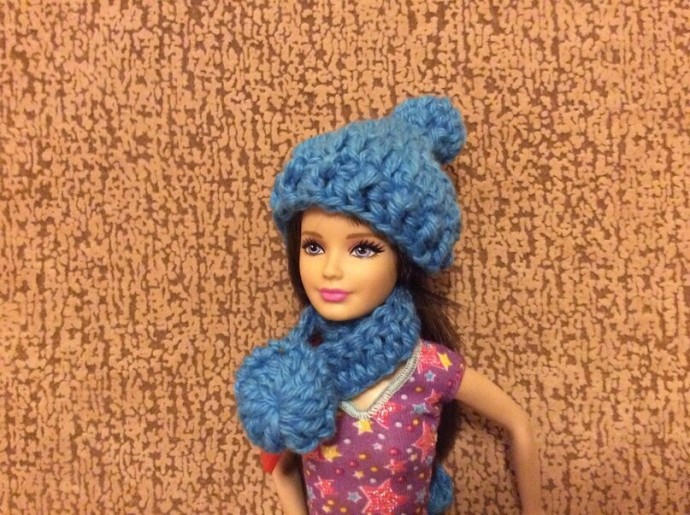 Шапочка и шарф с шариками-" снежками" на Барби .