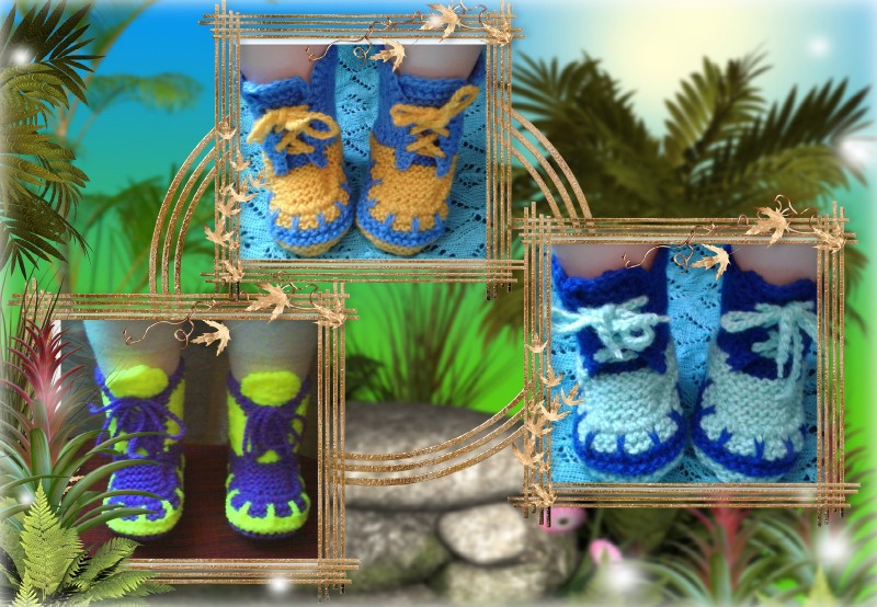 Пинетки спицами двухцветные с МК